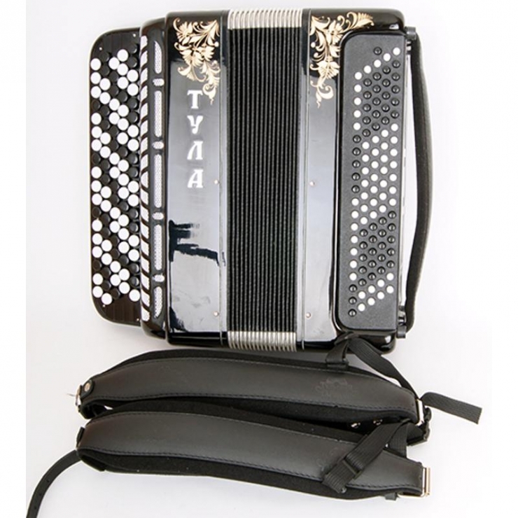 - Изработен от Тула двучастичен акордеон с много тимбрални бутони, предназначен за самостоятелни изпълнения или като част от ансамбъл