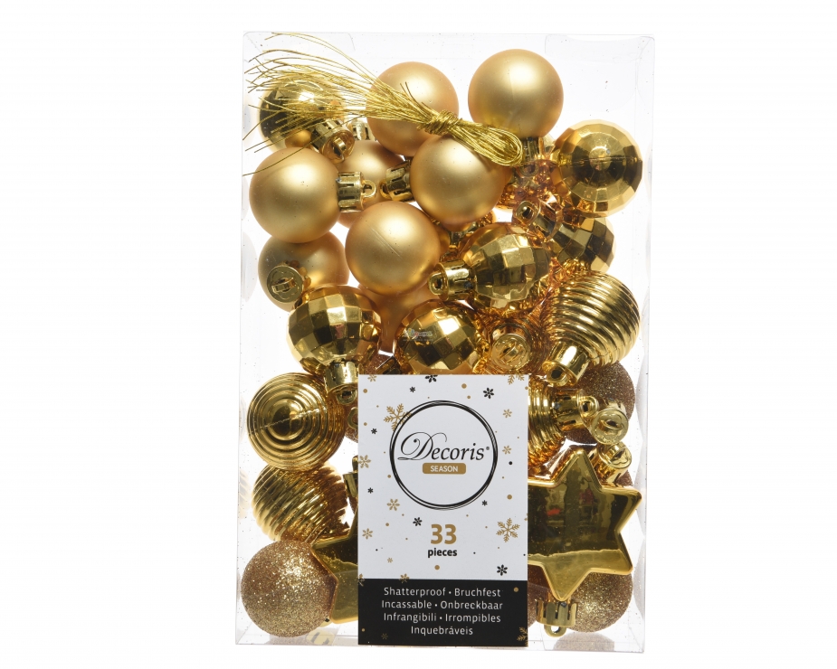 - Комплектът служи като готово цялостно решение за украса на малко коледно дърво. Отличната селекция от играчки ви позволява да създадете пълна композиция