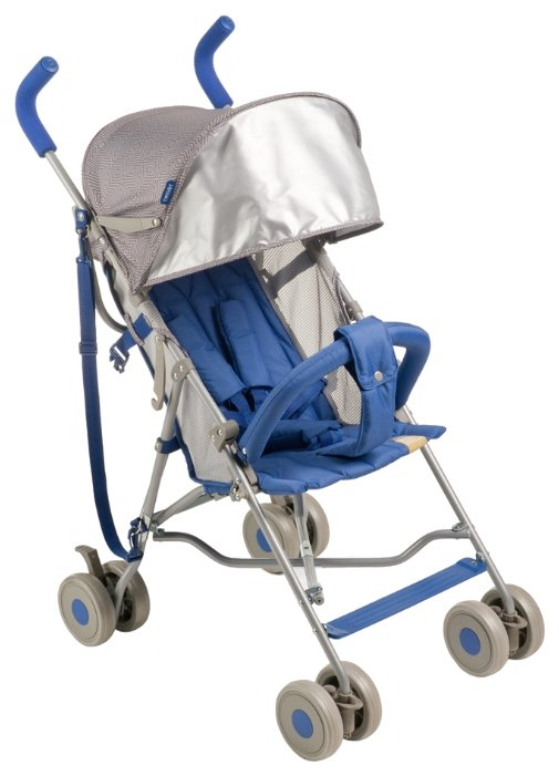 Сгъва се с една ръка, има удобна каишка за носене - тази бастун ще се превърне в надежден помощник при пътувания. Страхотно за лятото - отстрани има мрежести вложки, на качулката е фиксиран широк сребрист козирка, който покрива очите на трохите от ярките слънчеви лъчи.