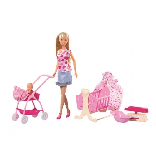 - В този комплект за игра, любимата на момичетата, Стефи стана майка на сладко бебе. Сега можете да излезете с още по-интересни игри с очарователна кукла
