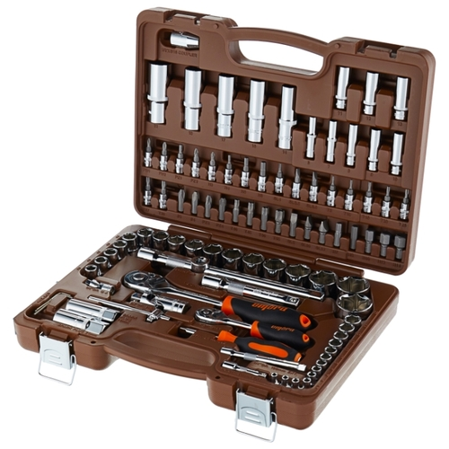 - Комплект от различни автомобилни инструменти (накрайници, комбинирани ключове, отвертки и др.) В размер на 101 броя ви позволява да изпълнявате почти всяка задача за професионален ремонт на машини или оборудване