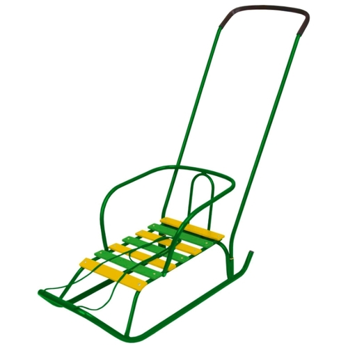 - Гумирани колела с механизъм за задействане на педала правят възможно преместването на шейната по всякакви хоризонтални повърхности без сняг или ледена покривка