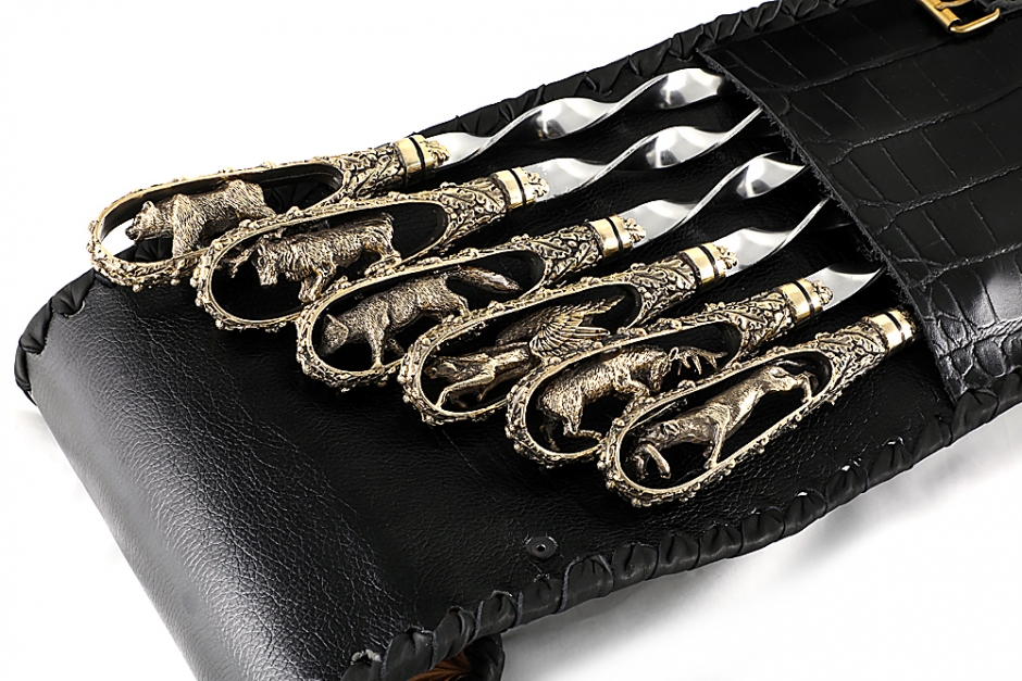 - Подаръчни шишчета за приготвяне на шашлик и кебап, изработени от неръждаема стомана с декоративно формоване на дръжката