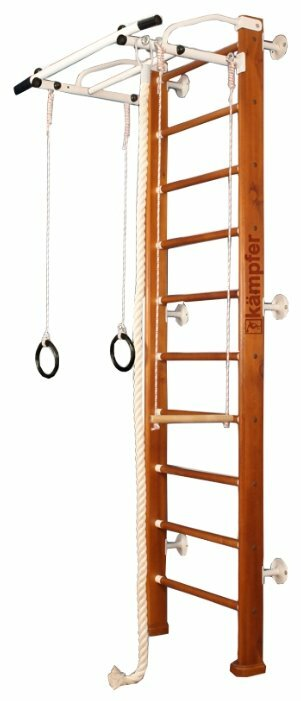 - Богат набор (пръстени, хоризонтална щанга, въже, въжена стълба и др.) Ви позволява да изпълнявате различни комплекти упражнения, а надеждното закрепване към стената гарантира безопасна работа