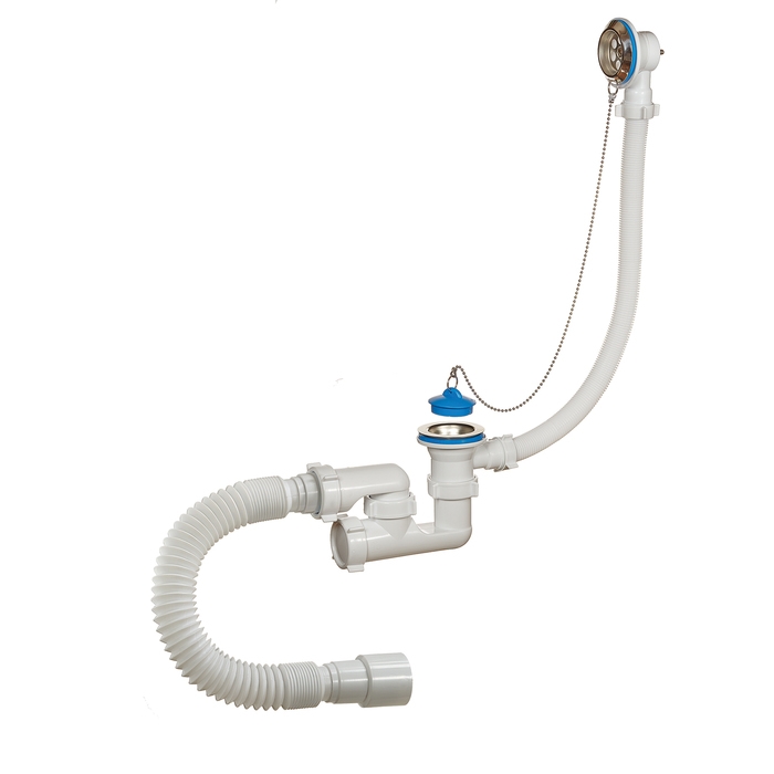 - Пластмасова лента с променлива дължина на преливане за оттичане на отпадъчни води в канализацията. Проектиран за повечето акрилни, стоманени или чугунени вани със стандартно разстояние между дренаж и преливник