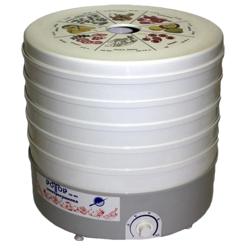 Многофункционален модел, който изсушава всичко без излишни усложнения: плодове, зеленчуци, билки, гъби, месо. Мощността от 520 W е „златната среда“, особено за този вид пари, защото дори скъпите аналози имат мощност под тази. Вградената защита от прегряване изключва нагревателния елемент в точното време. Заедно с механично управление, това осигурява на устройството няколко години стабилна работа.