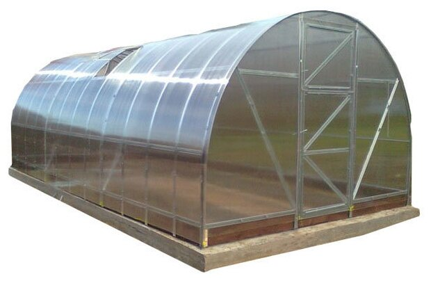 - Оранжерията е покрита с пчелен поликарбонат с дебелина 4 мм, което гарантира оптимална плътност, надеждност и пропускане на слънчева светлина