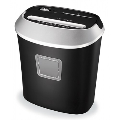 - Офис шредер за хартия, оптични дискове, пластмасови карти и др. с автоматично подаване и байпас за ръчно подаване за 8 листа