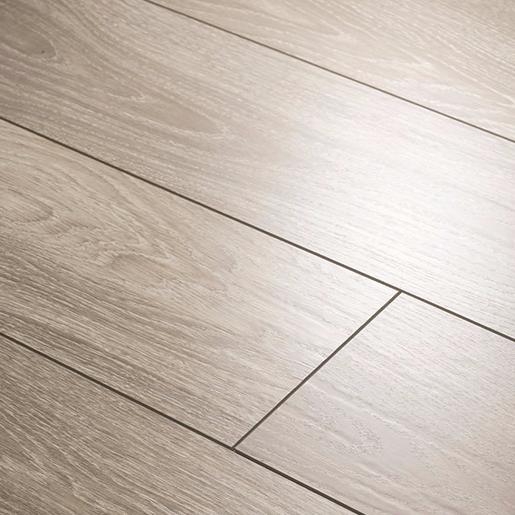 - Домакински ламинат с релефна повърхност, която повтаря релефа на естественото дърво в светлосиви тонове